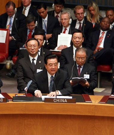 9月24日,胡錦濤在紐約出席安理會核不擴散與核裁軍峰會并發表重要講話。新華社記者鞠鵬 攝